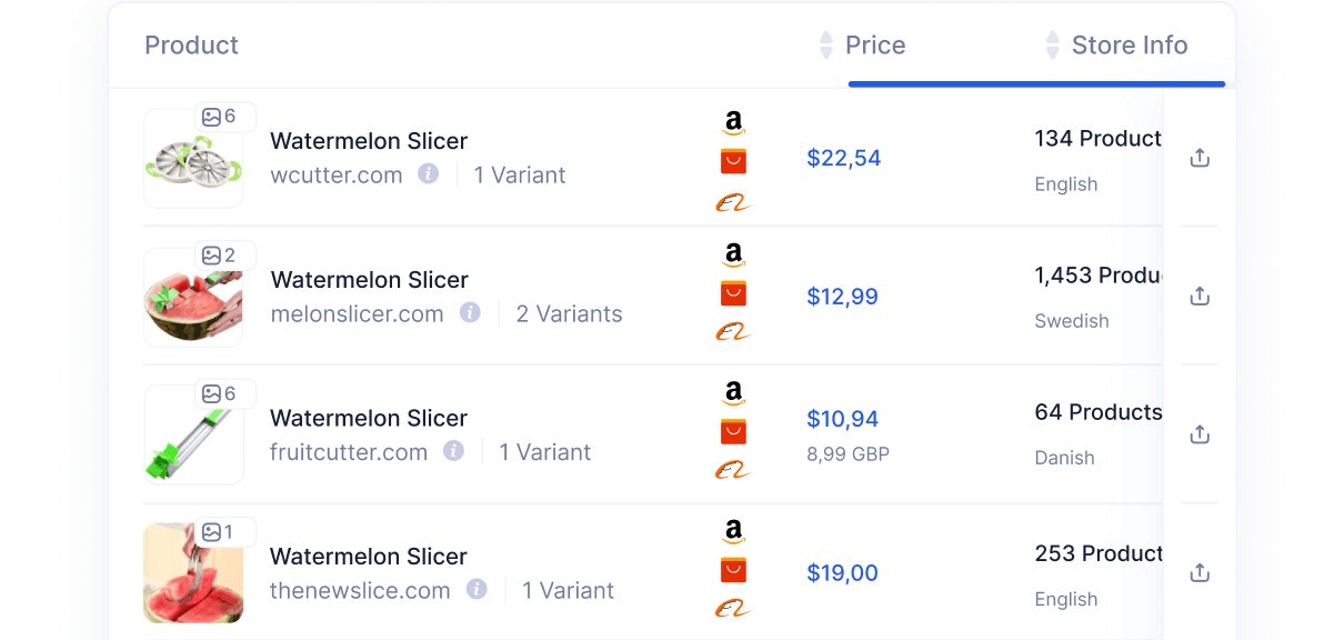 Make laser-targeted searches on millions of products to find stores selling the products you're researching.