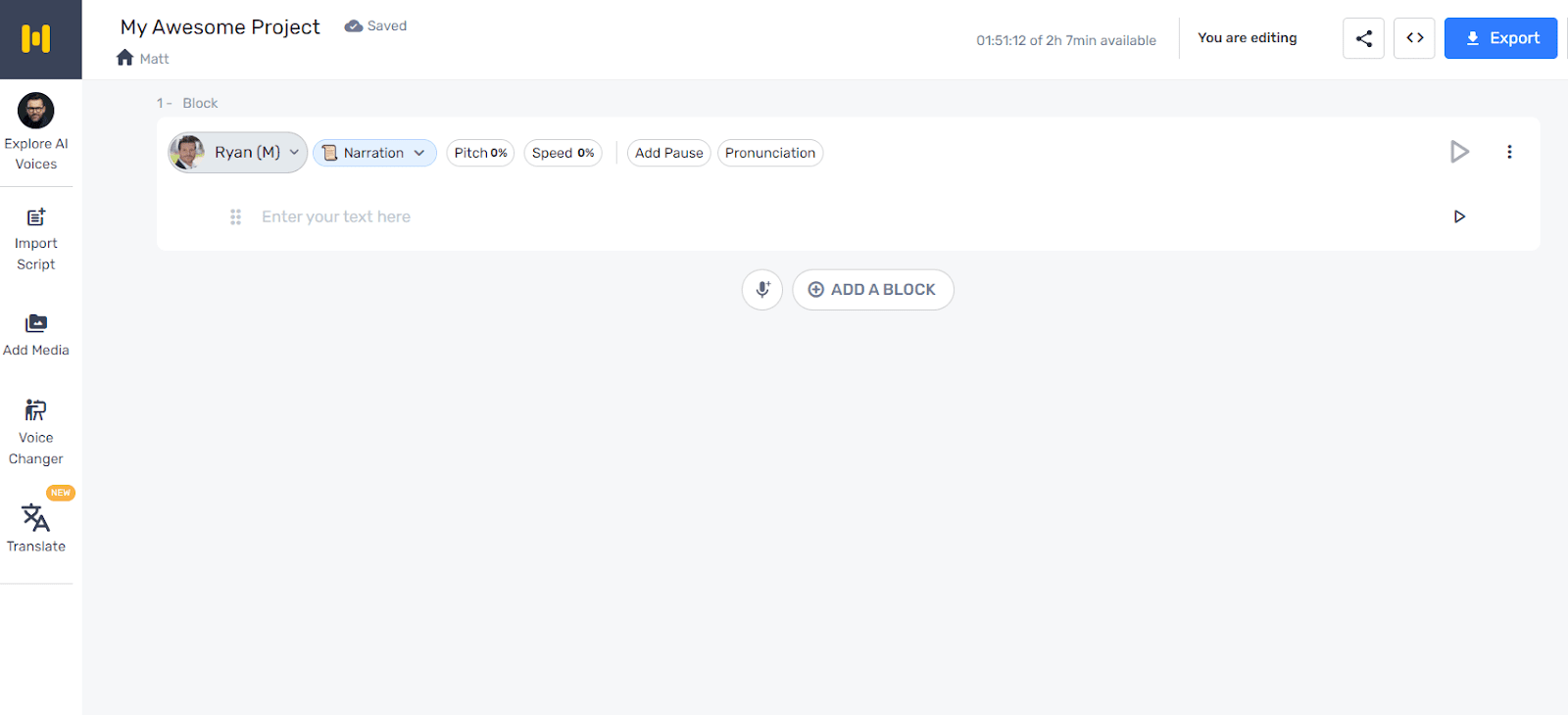 All you need to do here is add a block of text and click the play button. There are over a hundred voices, accents, and languages to choose from.