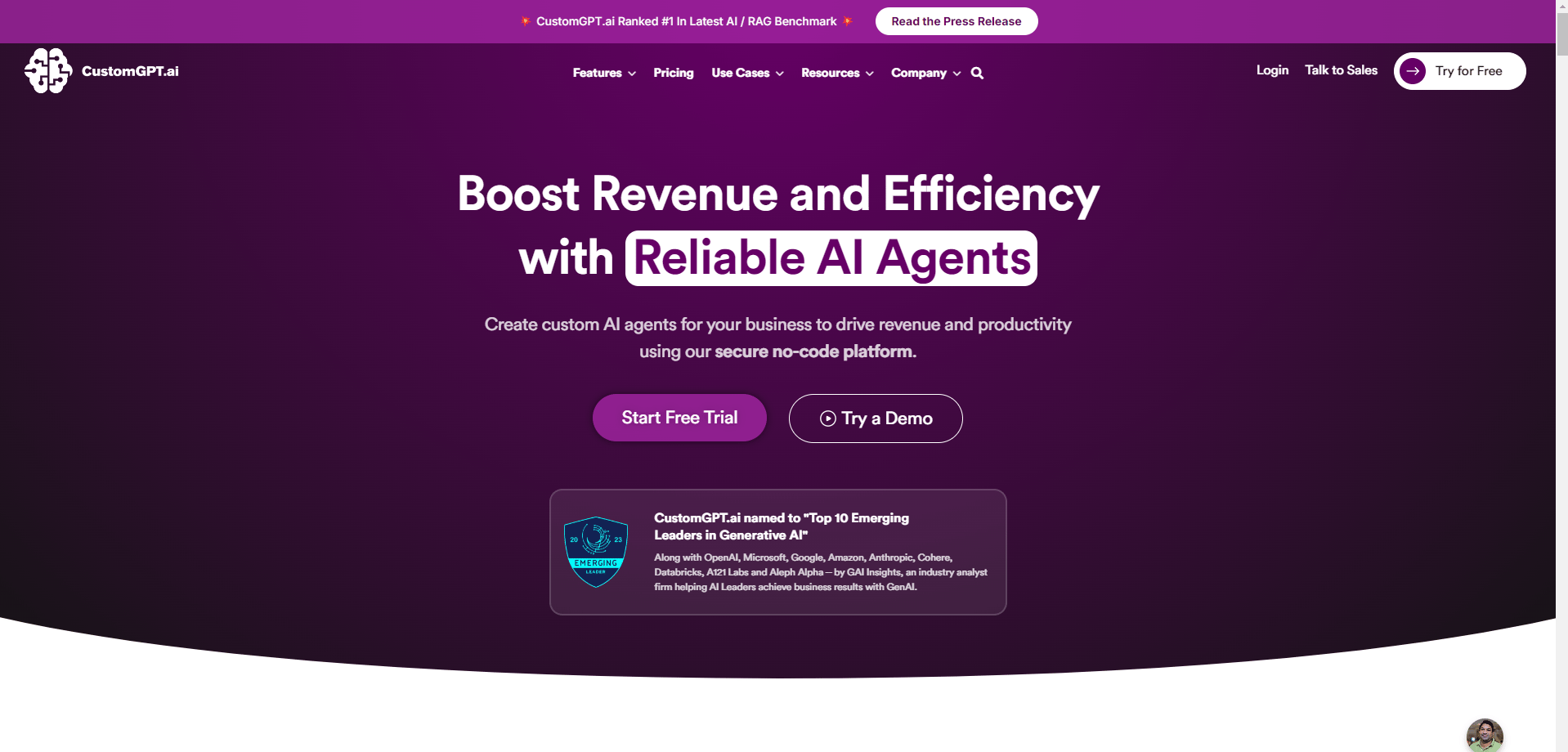 - CustomGPT.ai – Best for Custom AI Chatbots