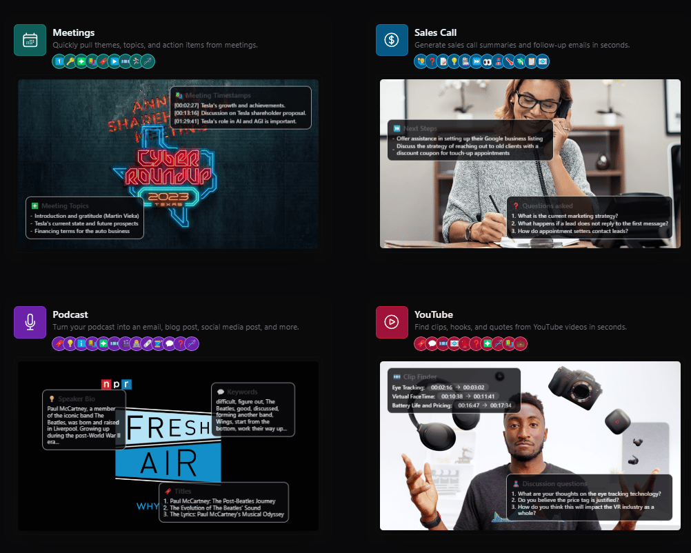 Castmagic is an AI tool that turns your voice recordings (e.g., product demos, mini-podcasts, or marketing tips) into immediately usable text content.