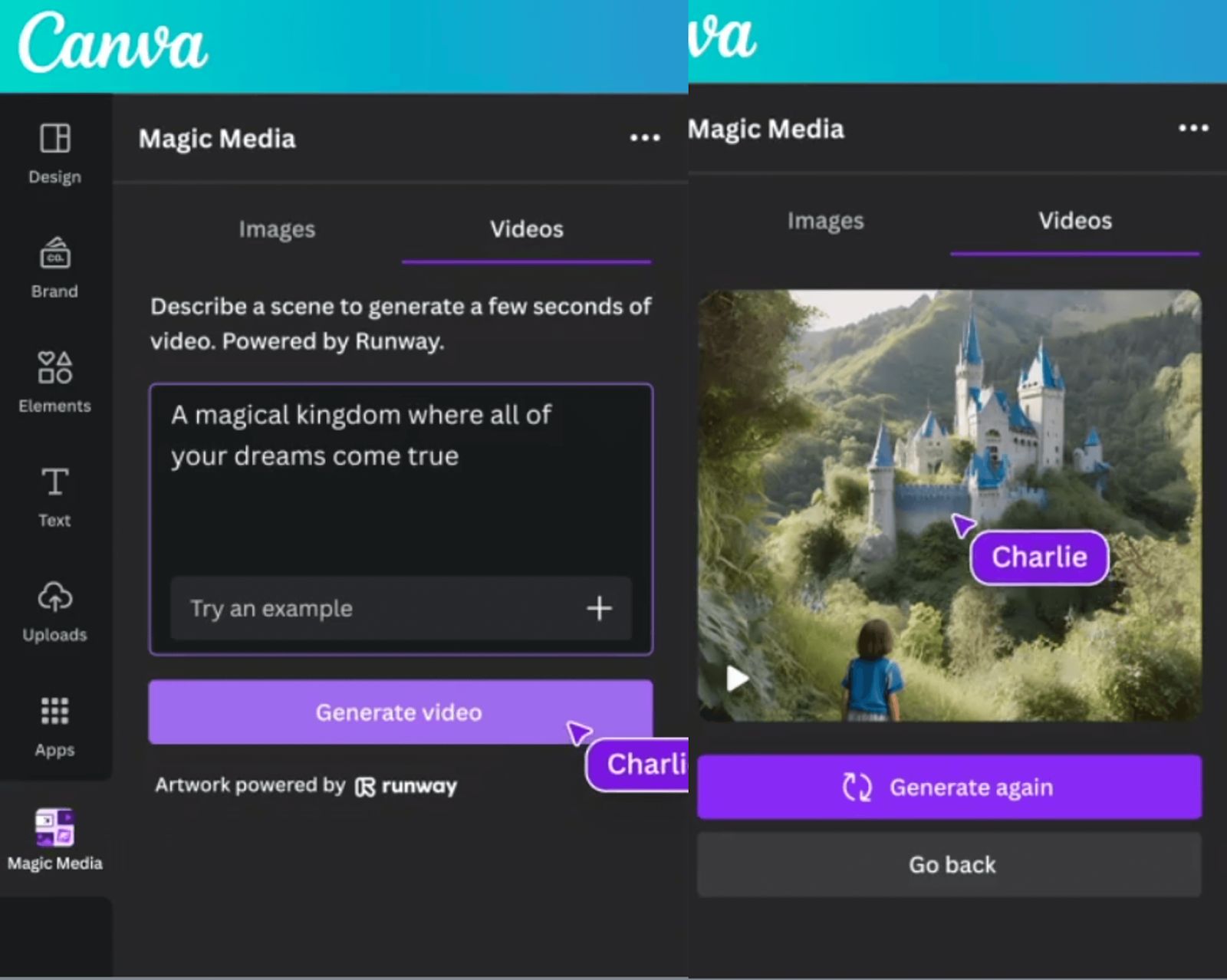 The most useful aspect of Magic Design is video editing. With it, you can highlight several of your uploaded videos, and tell Magic Design what to do with it.