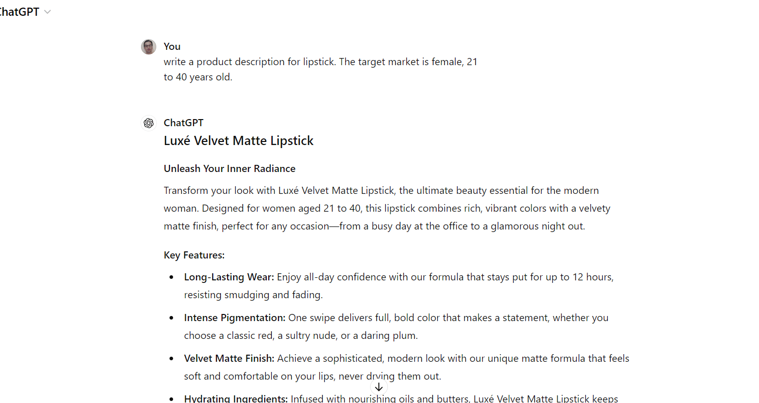 You can ask AI to rewrite the product descriptions to make them unique. Or, you can ask it to build a product description from scratch.