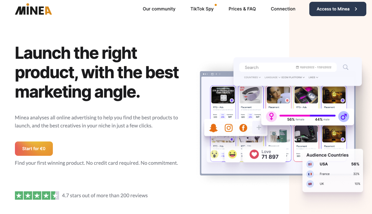 With Minea, you can choose and launch winning products based on people’s reactions to them.