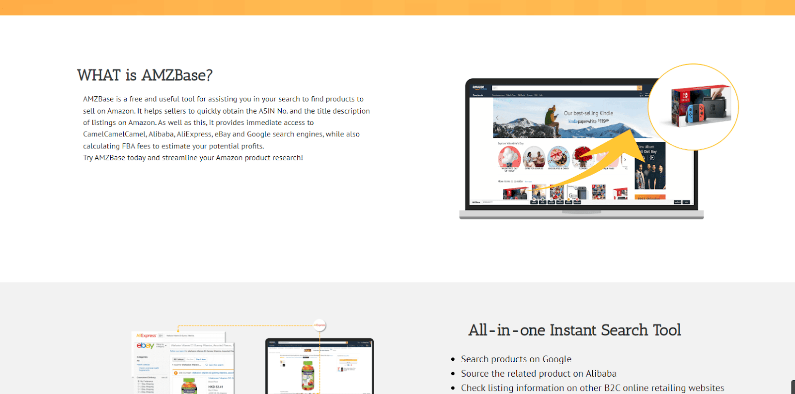 AMZBase is a Google Chrome extension that shows data once you are on an Amazon product page. On top of that, they expanded their software to cover Google Shopping, AliExpress, eBay, and Alibaba.