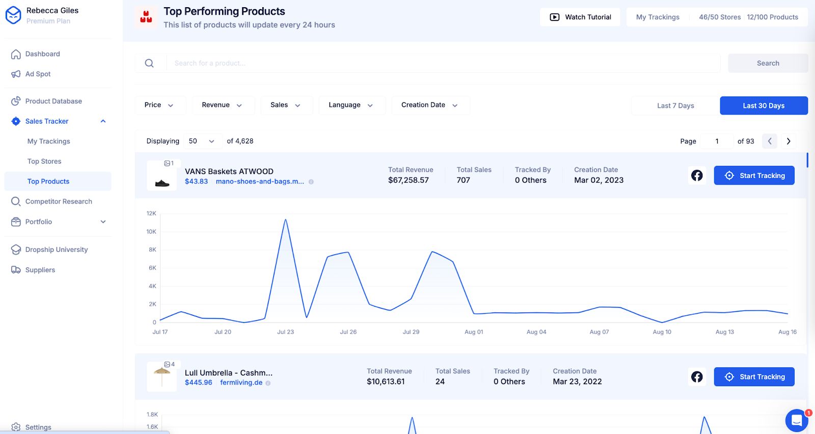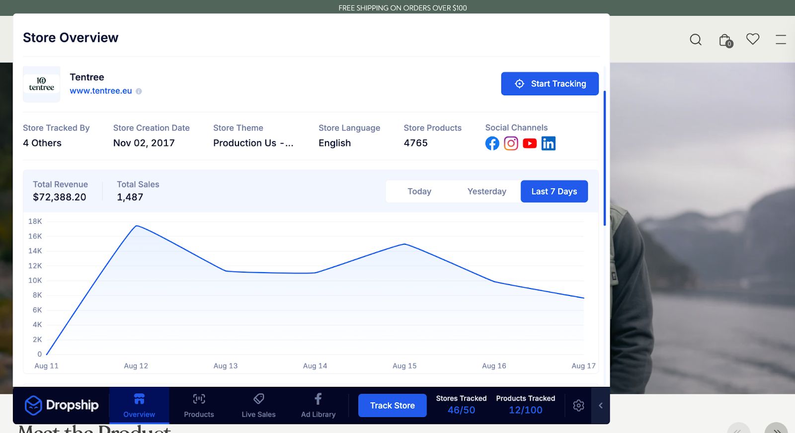 We’ll look at Dropship, as it’s a Shopify and Facebook Ad product research tool. Plus, it gives you lots of data, including product sales, revenue, and much more.