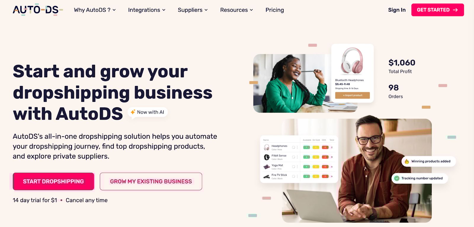 Then, once you’ve sourced your product, you can use AutoDS to import the product easily to your store. And automate orders. This means every time you receive an order, the supplier is notified automatically and ships the product directly to your customer. AutoDS can also help you handle returns and refunds.