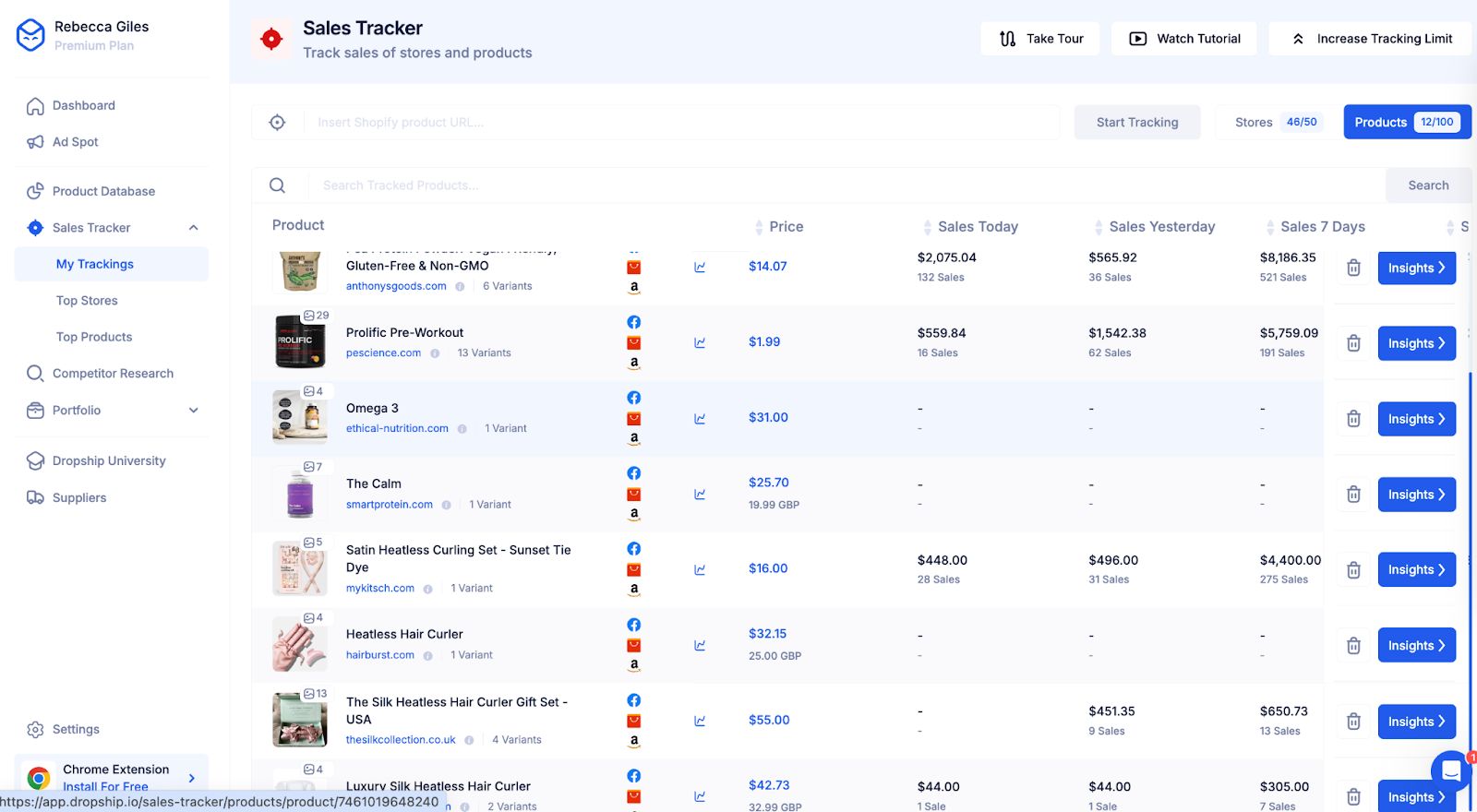- Sales Tracker - Save products you’re interested in to your Sales Tracker. This allows you to keep an eye on products, analyze their sales over time, and monitor your competition.