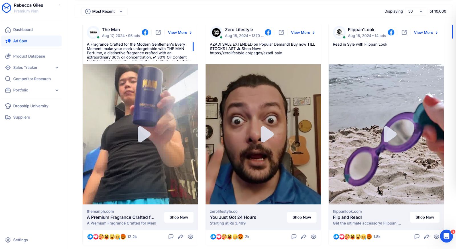 - Facebook Ad Spot - All of the Dropship tools we’ve just looked at analyze Shopify sellers’ stores and products. However, the Facebook Ad Spot tool allows you to search the Facebook Ad Library to find winning products. You can search by engagement, creative type, keyword, and much more.