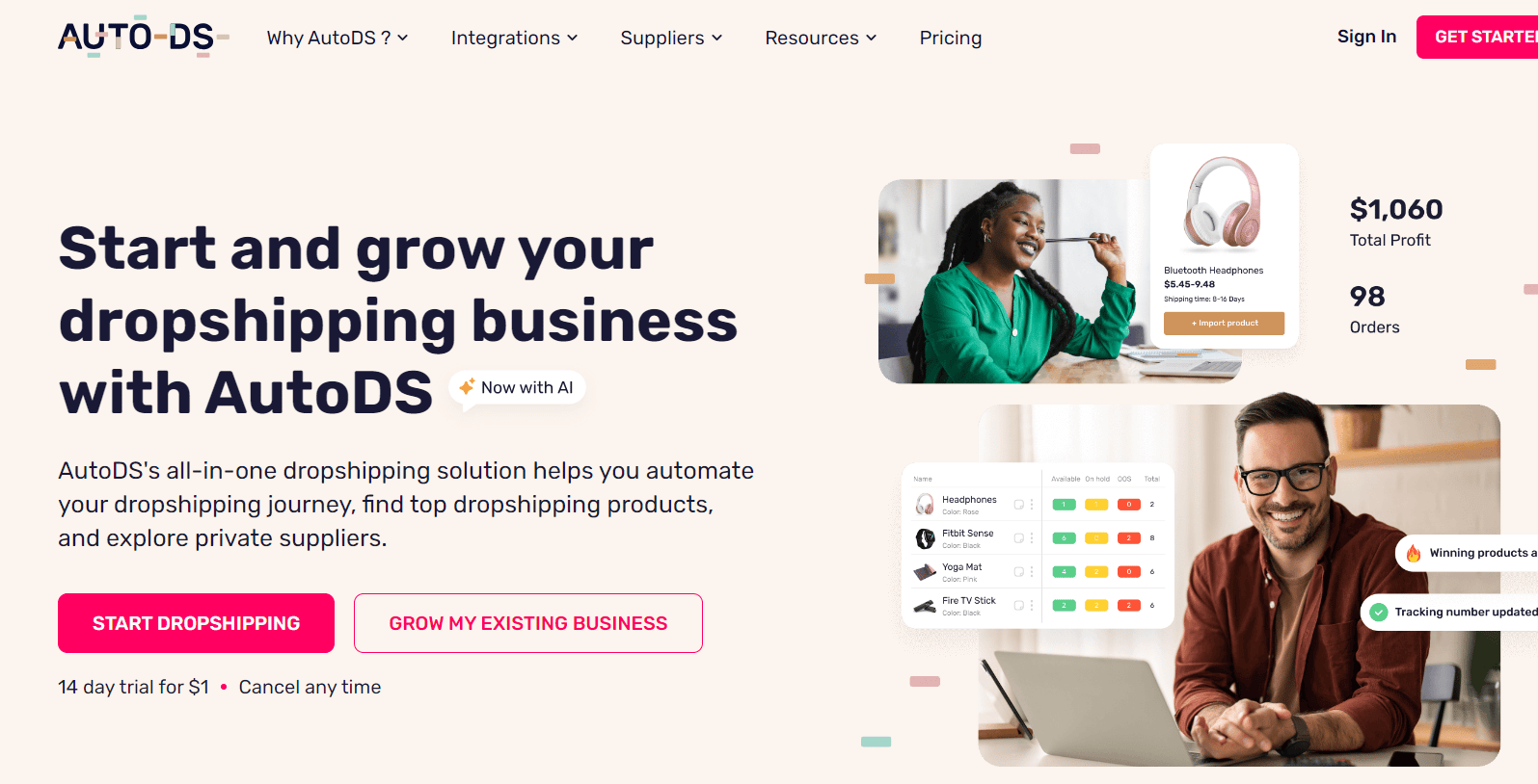 Summary: AutoDS is a dropshipping supplier platform with over 500 million products. They work with suppliers not only from AliExpress but from other marketplaces, giving you leverage to sell products from international warehouses.
