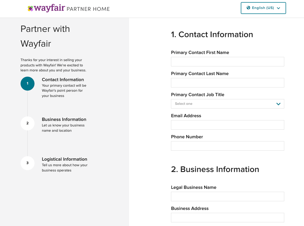 To apply to Wayfair Partner Home, you need to provide the following information: