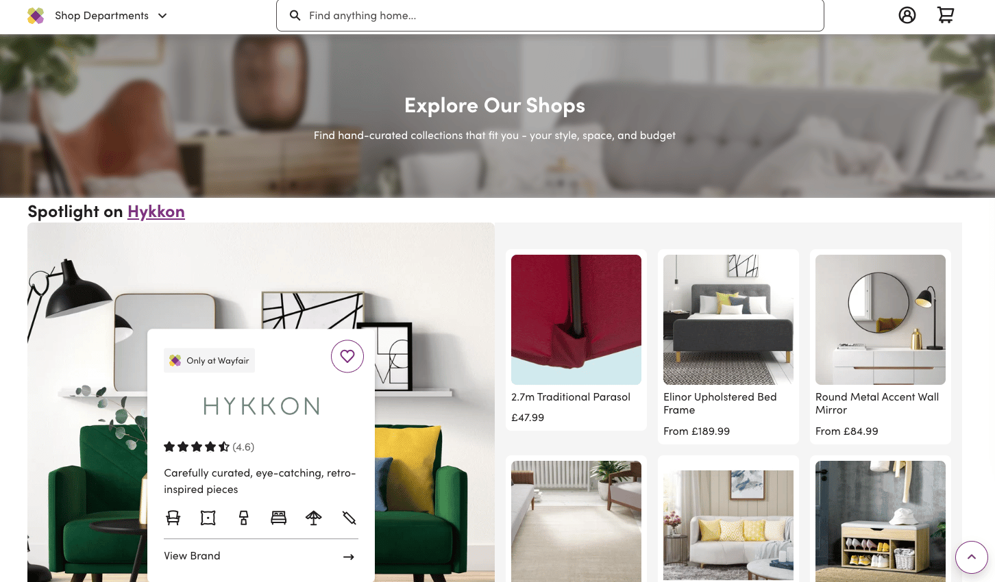 Wayfair is one of the largest homeware and furniture websites. It has over 14 million products from 11,000 suppliers.