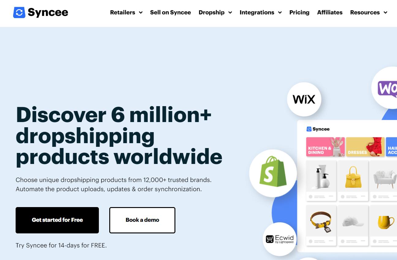 - Integration – Syncee lässt sich in mehrere Plattformen integrieren, wie Shopify, WooCommerce, Wix, Ecwid, Squarespace und viele mehr