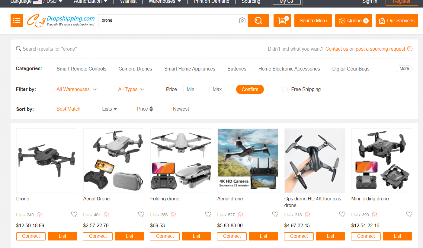 Es gibt jedoch bessere Optionen, bei denen Sie Lieferanten finden und ein System nutzen können. Es ist weitaus besser, mit integrierten Systemen zu arbeiten als direkt mit Lieferanten. Im Folgenden sind die beiden besten Dropshipping-Lieferanten für Drohnen, die ich empfehle.