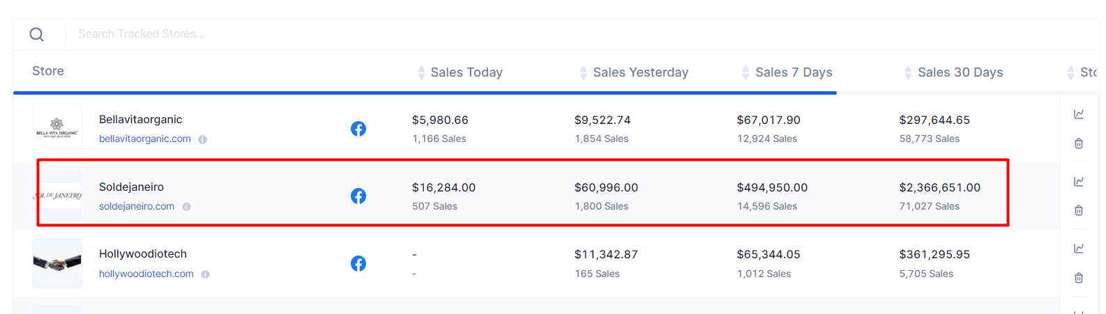 Ich habe nach diesen erfolgreichen Geschäften gesucht in unserer Produktdatenbank. Mit unserem Tool können Sie ein Schlüsselwort eingeben und dann die Verkäufe von Geschäften sehen, die dieses Produkt verkaufen.