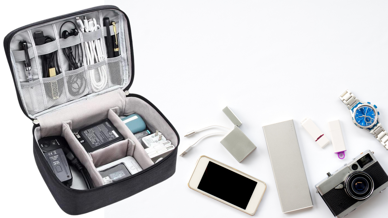 Ein elektronisches Reiseetui ist eine Aufbewahrungslösung für diese Produkte. Sie können solche mit verschiedenen Fächern und Abschnitten anbieten, um die Geräte sicher zu trennen und aufzubewahren.