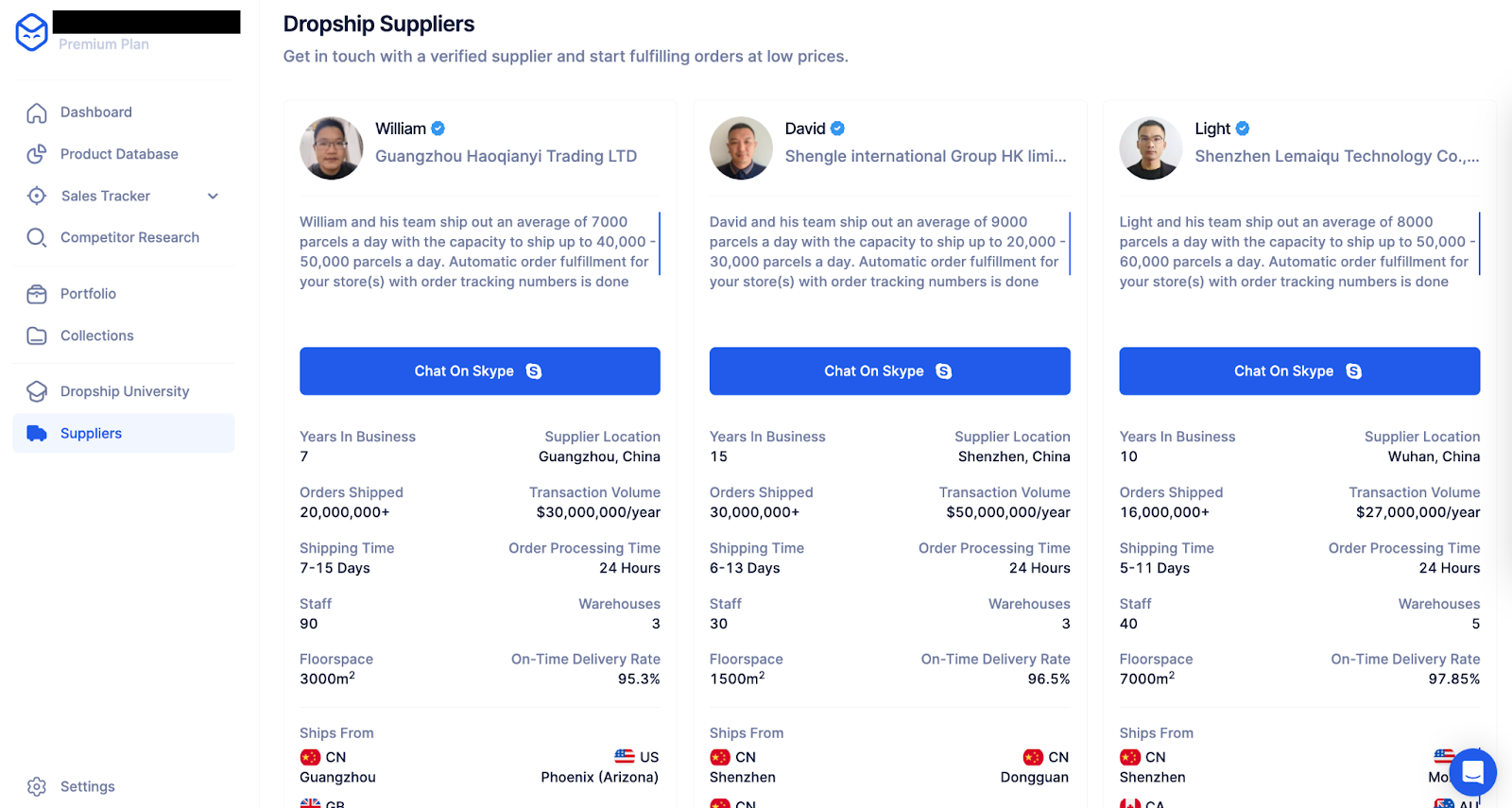 Sie können sie auch über Skype kontaktieren. Ein direktes Gespräch mit Ihrem Lieferanten ermöglicht es Ihnen, eigene Vereinbarungen zu treffen, Ihre Konditionen auszuhandeln und Ihr eigenes sicheres Zahlungsgateway zu nutzen.