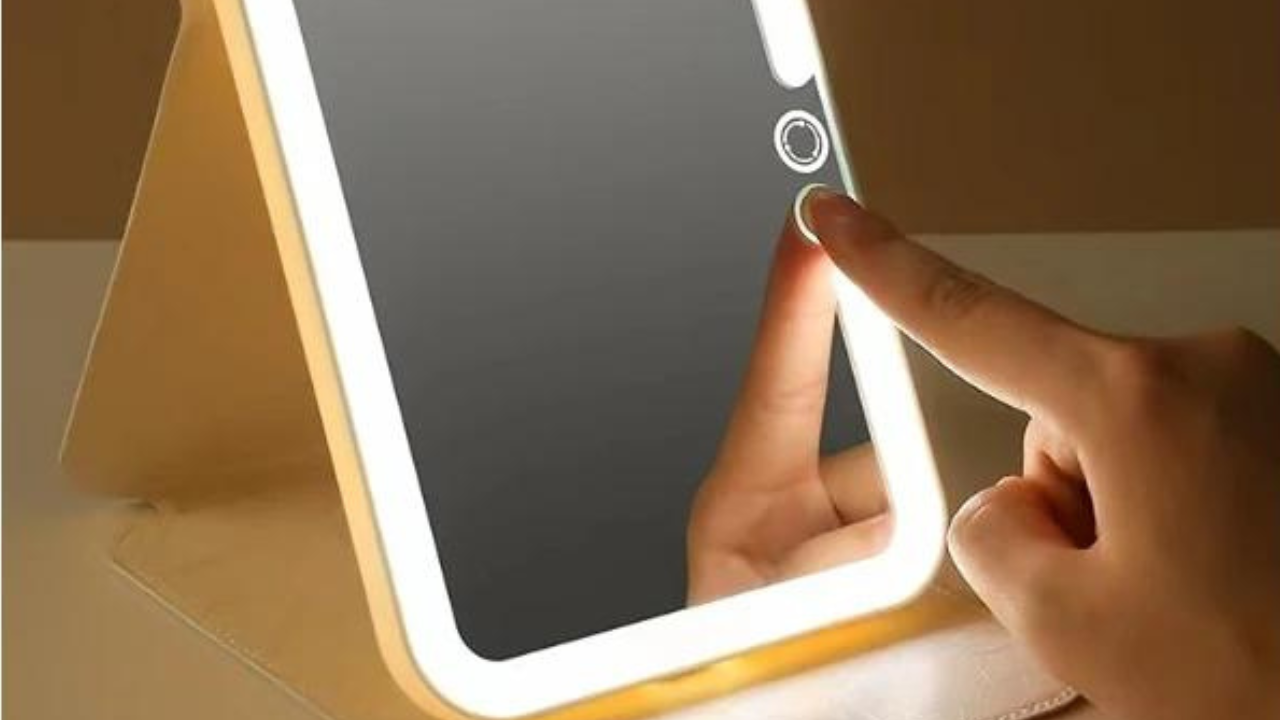 Ein klappbarer beleuchteter Spiegel ist genau das, was der Name sagt. Es handelt sich um einen kleinen Spiegel, der tragbar ist. Das Klappgehäuse schützt ihn während des Transports. Sobald er geöffnet ist, dient das Gehäuse als Ständer, und der Spiegel leuchtet auf.