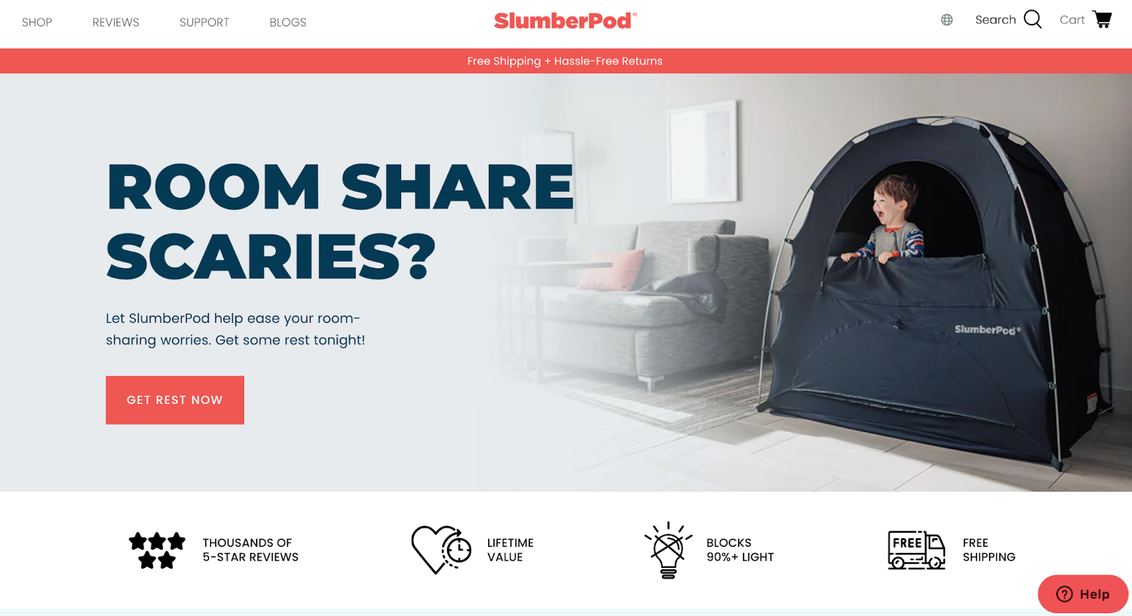 SlumberPod verkauft zeltartige Produkte. Die Pods werden über Kinderbetten gestellt, um Licht auszublenden. Sie verkaufen auch eine Haustiervariante, die auf Transportboxen gestellt werden kann.