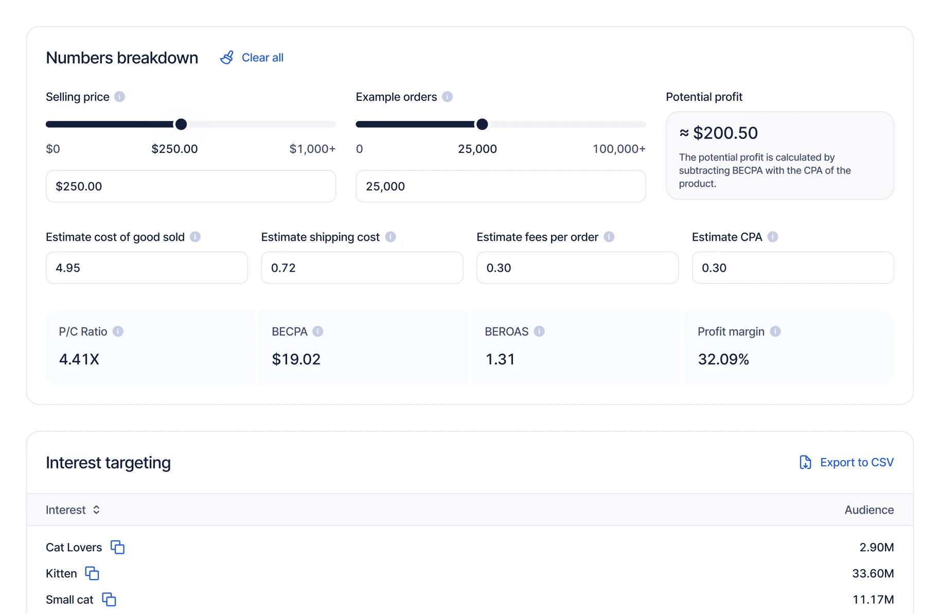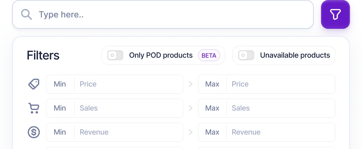 Mithilfe intelligenter Filter können Sie erfolgreiche Produkte finden, die auf Ihre spezifischen Anforderungen, Nischen und Vorlieben zugeschnitten sind.