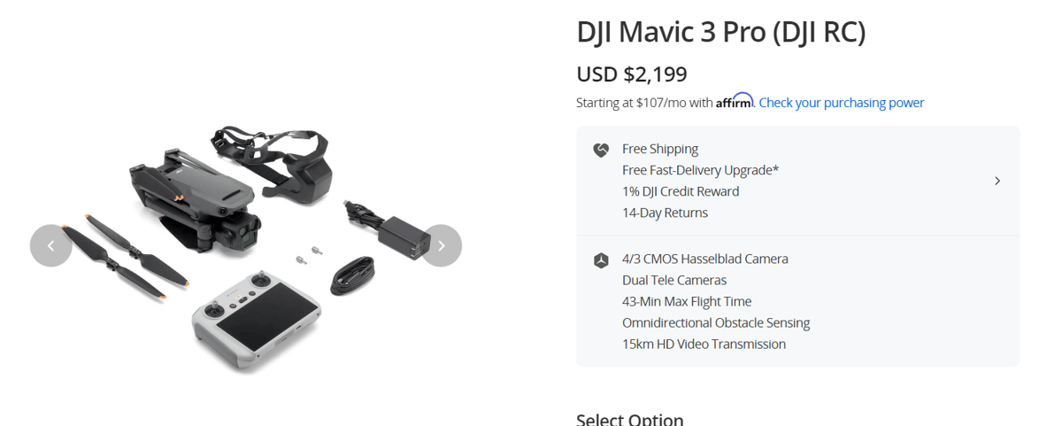 La première image montre un drone DJI. DJI est l'un des principaux fabricants de drones au monde. Comme vous pouvez le voir, il n'est pas bon marché. Seuls les professionnels achètent un drone à 2 000 $.