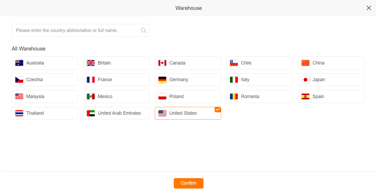 Avant de rechercher des produits, vous pouvez cocher un ou plusieurs de ces pays, et le système de CJ ne vous affichera que les produits stockés dans ces entrepôts. Grâce à cela, vous pouvez créer une boutique de dropshipping ciblant uniquement ces pays.