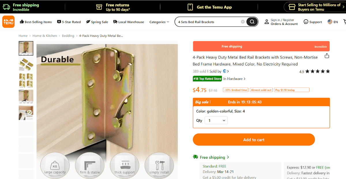 Voyez la différence de prix ? Vous pouvez acheter le même article sur Temu pour seulement 4,75 $, puis le revendre sur Amazon pour 12,99 $, soit un bénéfice de 8,24 $.