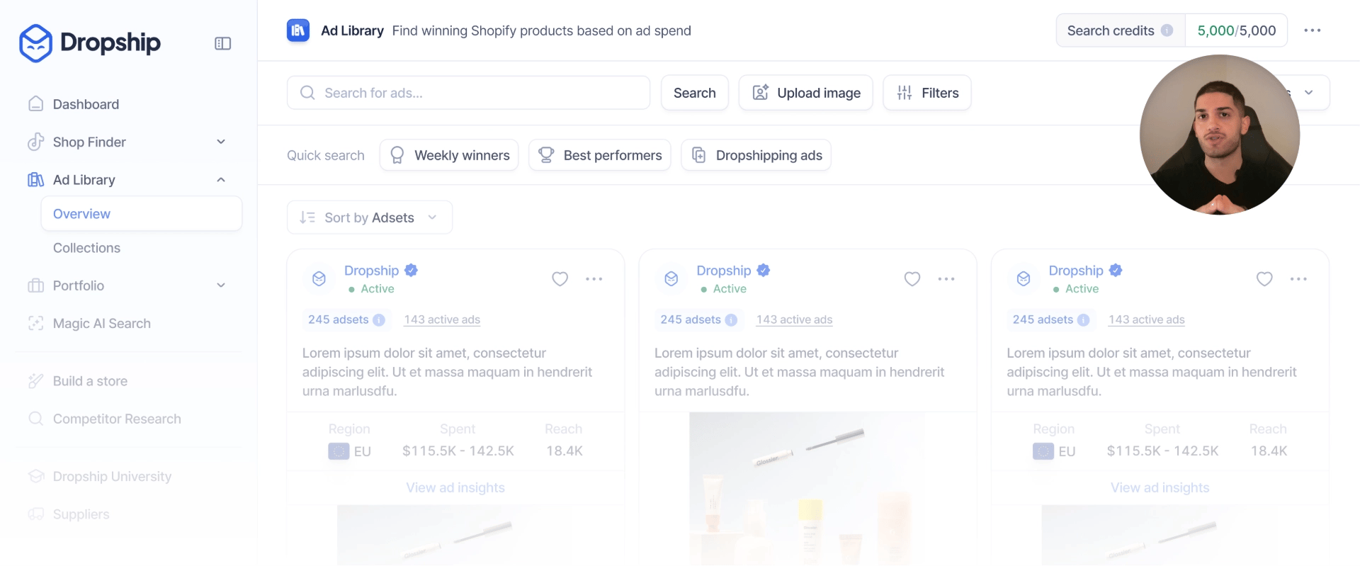 Trouvez votre prochain produit gagnant à l'aide de filtres intelligents parmi des millions de produits, de magasins et de publicités, adaptés à votre créneau.