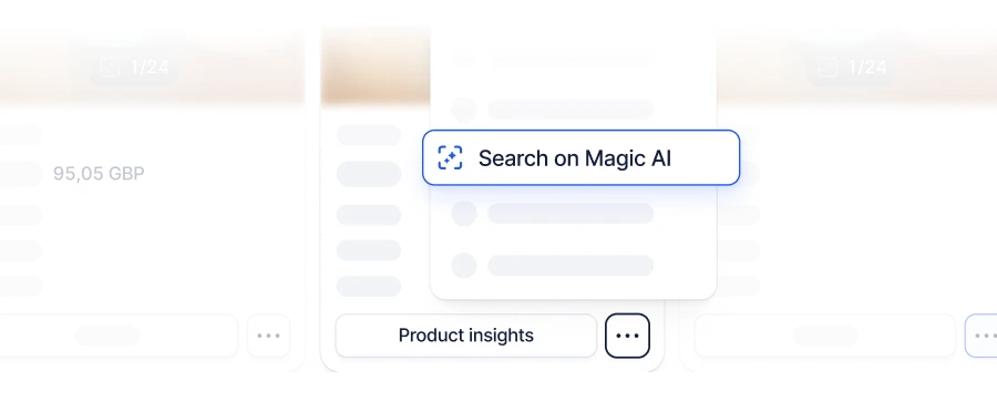 Magic AI Search is een tool waarmee je producten, winkels en advertenties kunt vinden op basis van elke afbeelding of video, waardoor je direct inzicht krijgt in concurrenten, markttrends en prestaties.