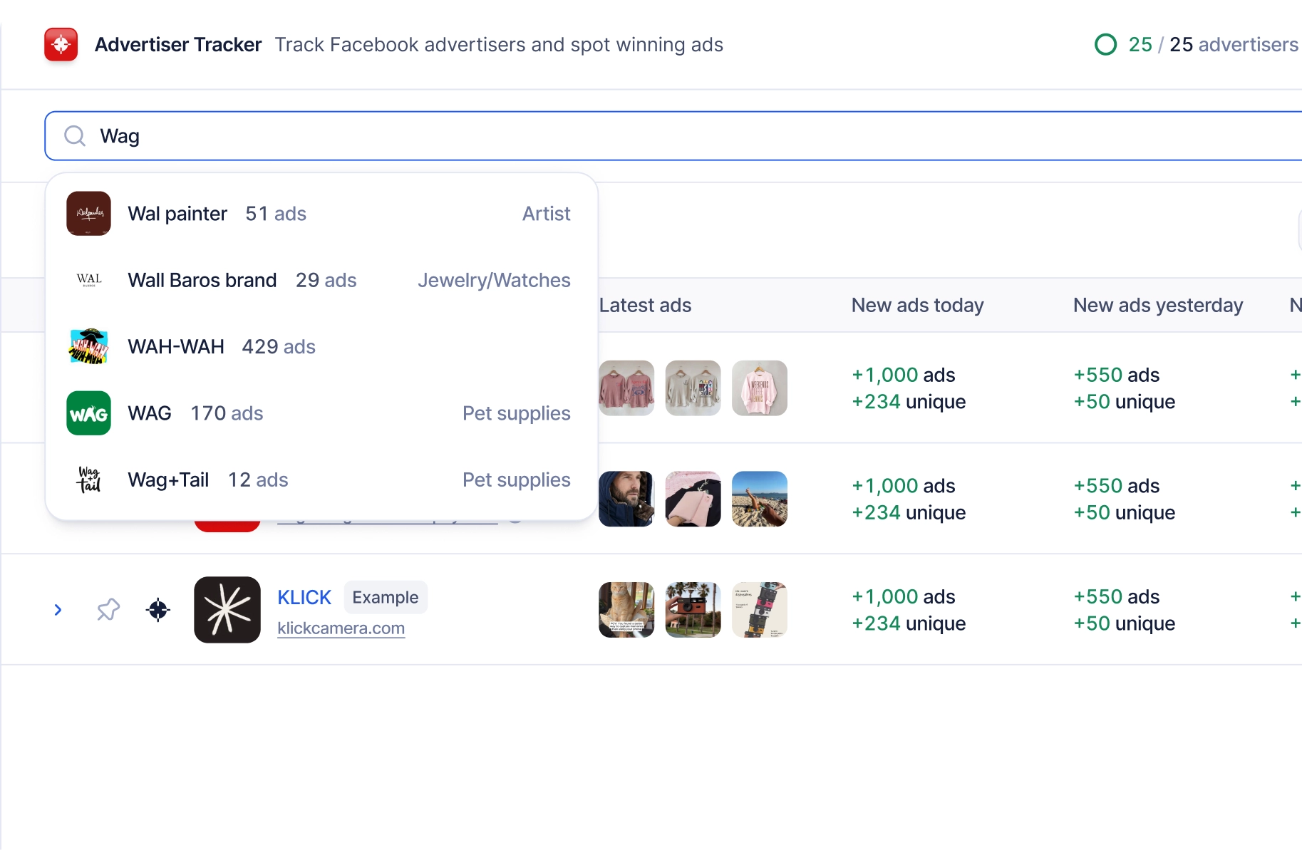 Track advertisers and their new ads
