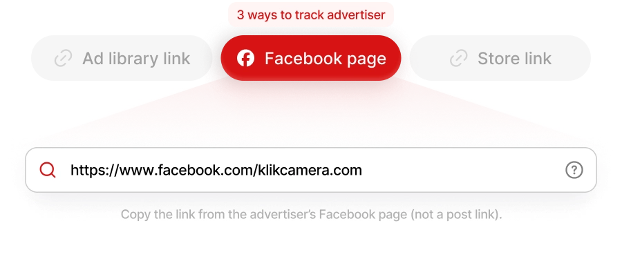 Three input options mean you can track any advertiser you find, no matter where you spotted them.