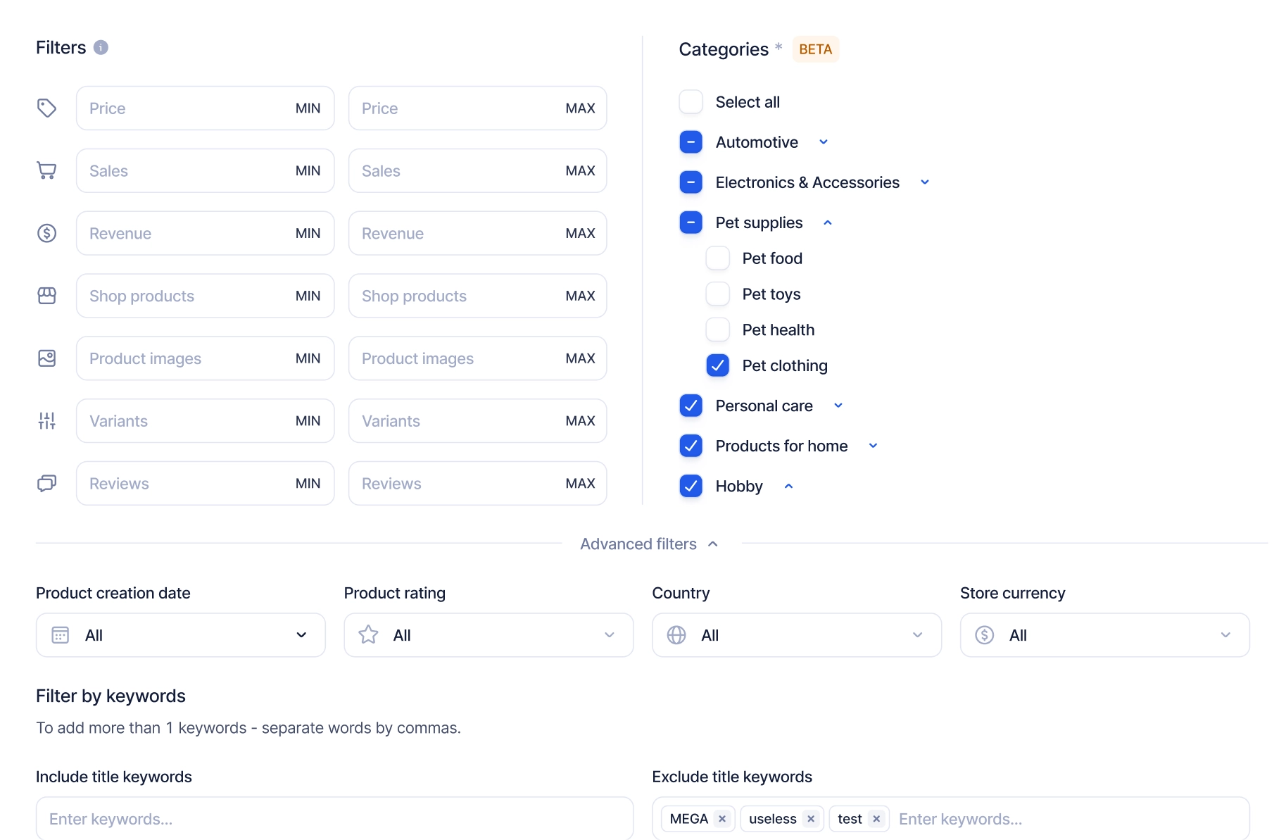 With advanced filters, you can easily discover winning products perfectly matched to your niche, needs, and preferences.