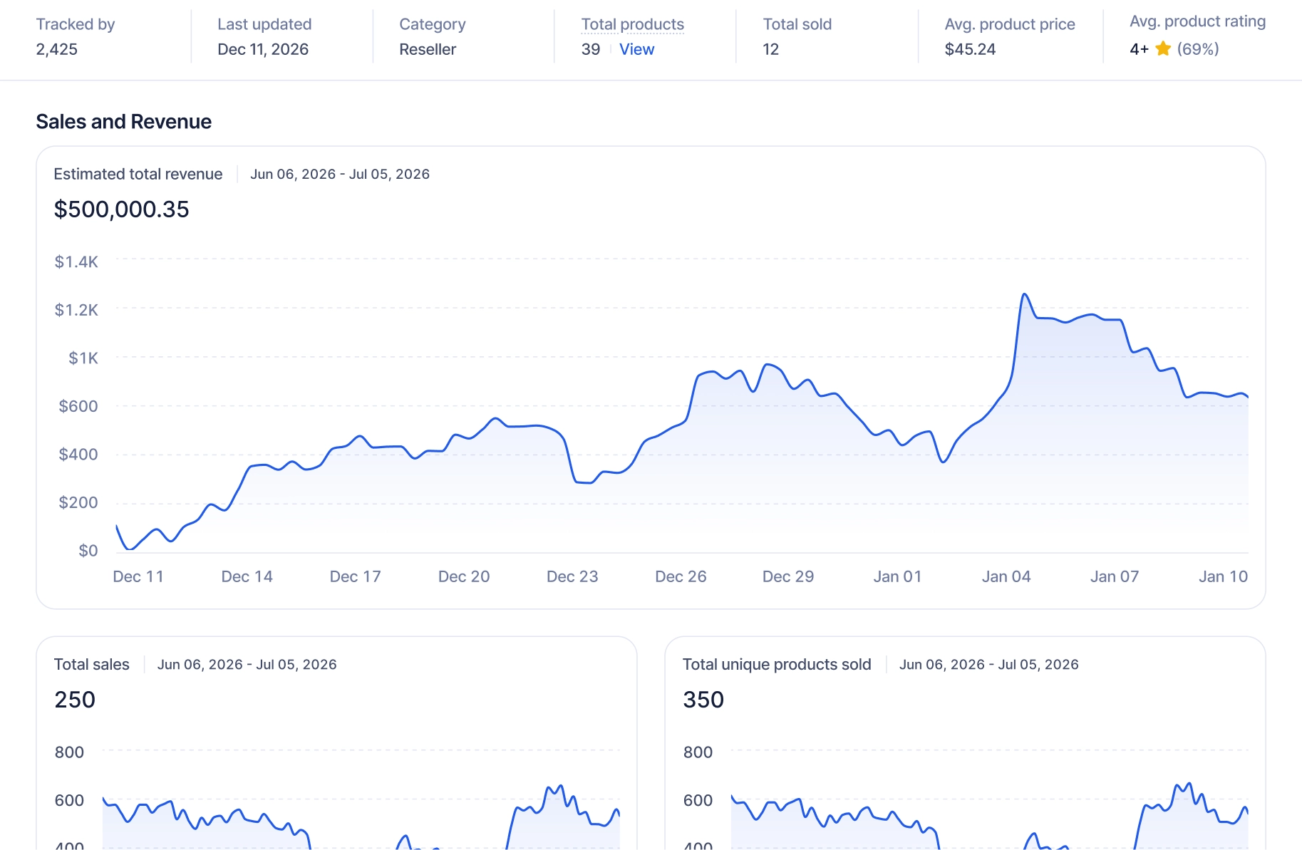Search every TikTok Shop by revenue, sales, growth rate, and niche. Find market leaders and the high performing shops.